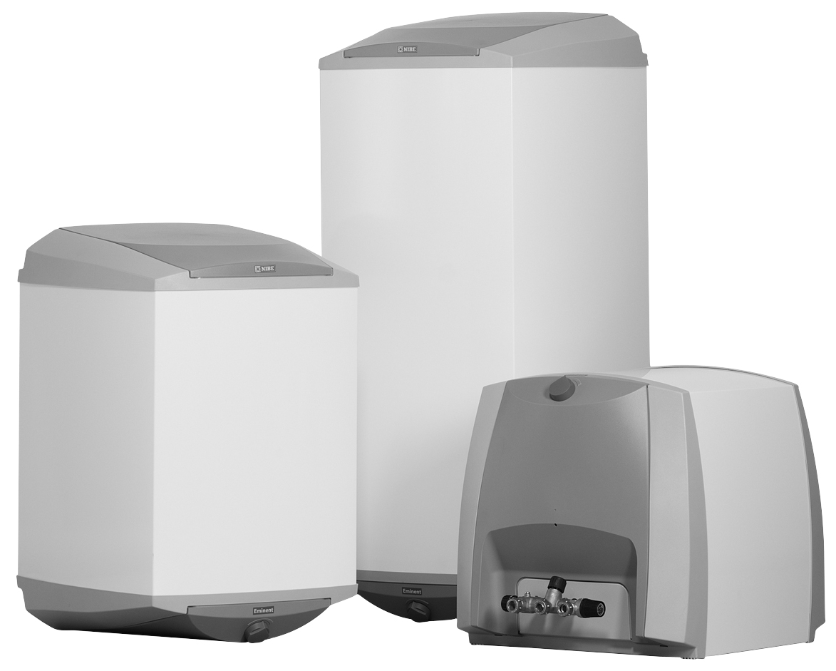 NIBE EMINENT är en liten, praktisk och effektiv varmvattenberedare för fritidshus och mindre hushåll. Termostaten kan regleras upp till 80 °C. NIBE EMINENT finns i fyra olika storlekar; 35, 55, 100 och 120 liter.